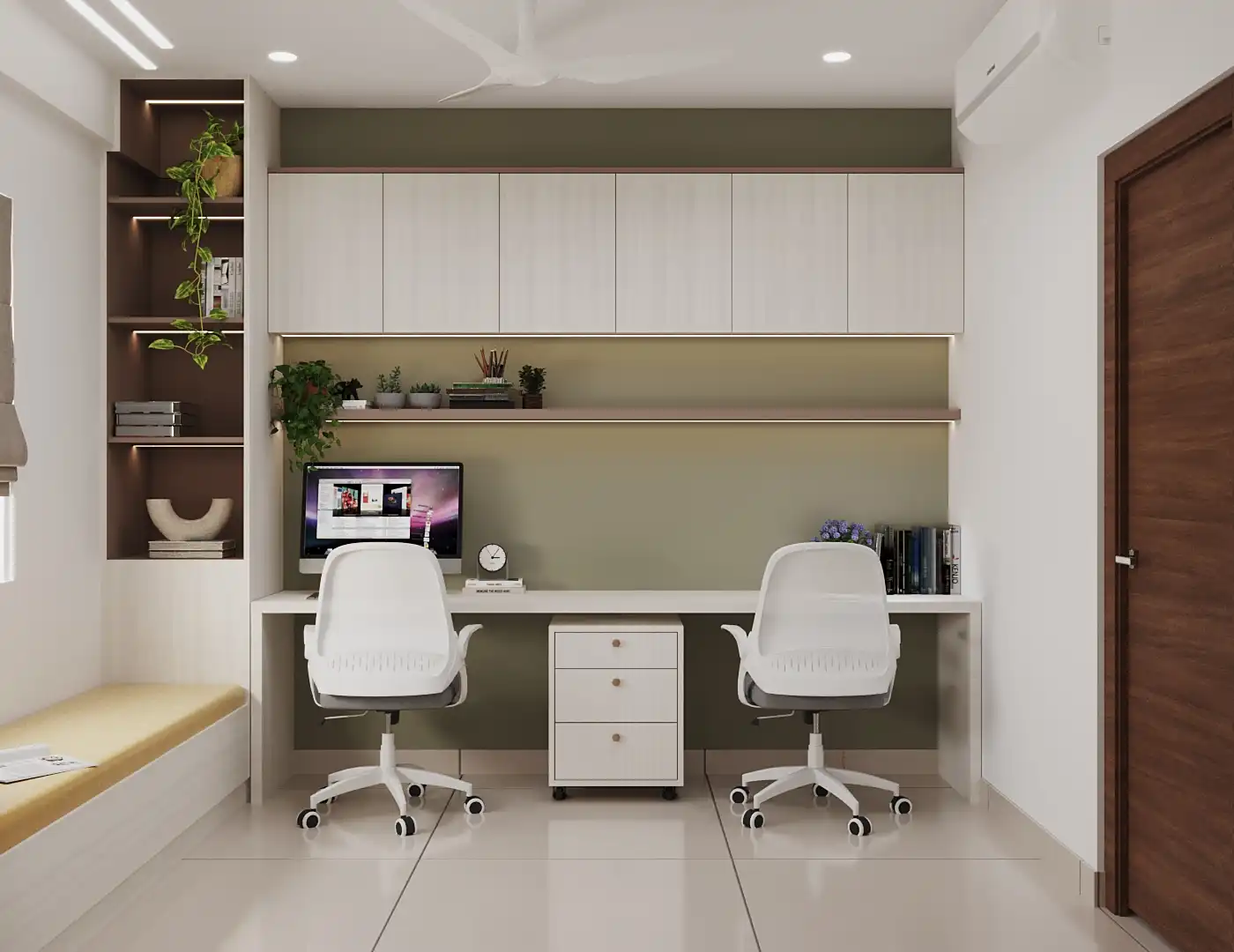 The most crucial factor in a study room is picking the right colour. Our team understands that the colours of your study room can have a significant impact on your productivity and motivation. You must choose hues that uplifts your mood and energises you. Interiosplash always suggests neutral and muted colours like white, beige to keep it minimal yet trendy. We always prefer colours that boost productivity but are calming too.
